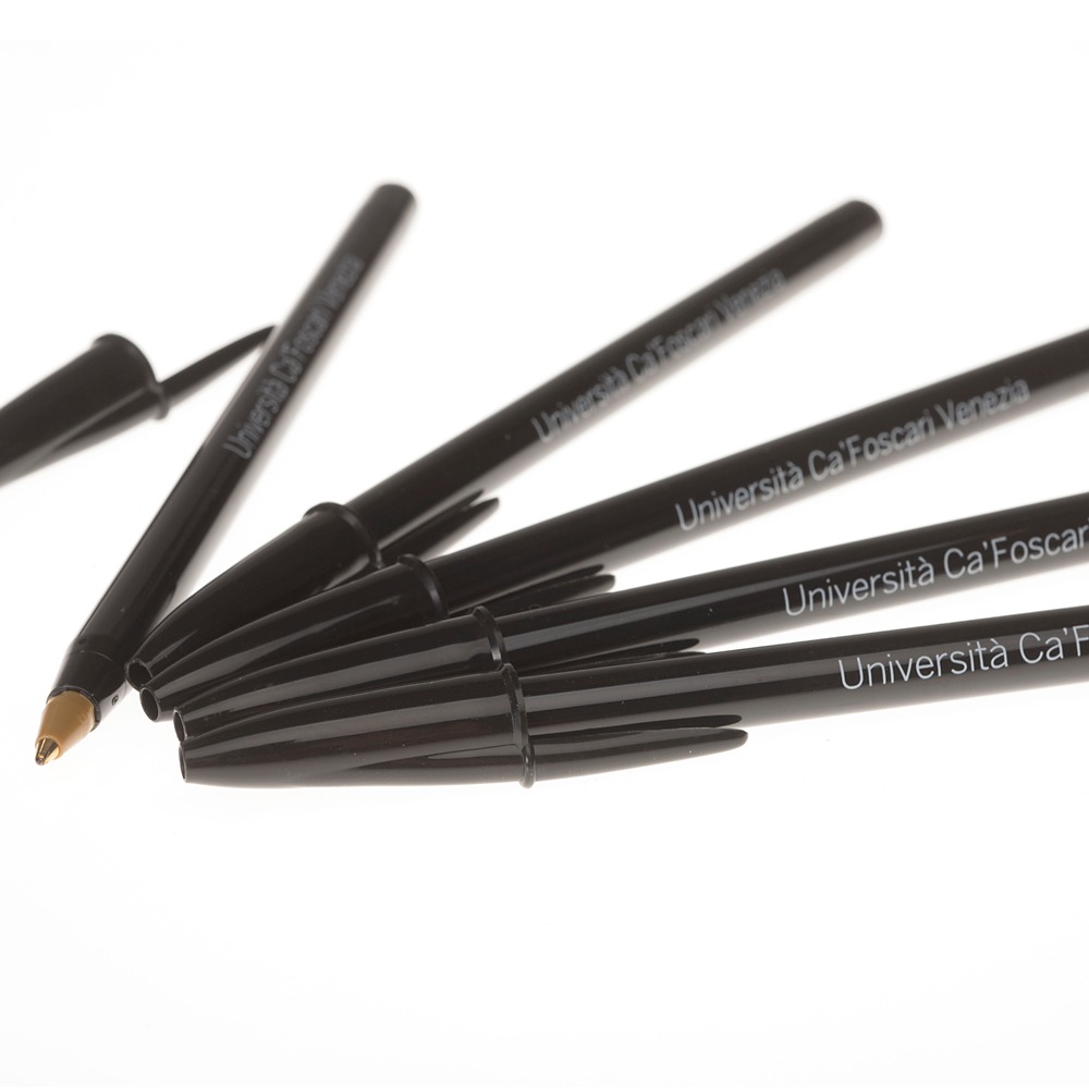 Ca’ Foscari branded Bic pen with frosted cap and body. Black, with black ink.