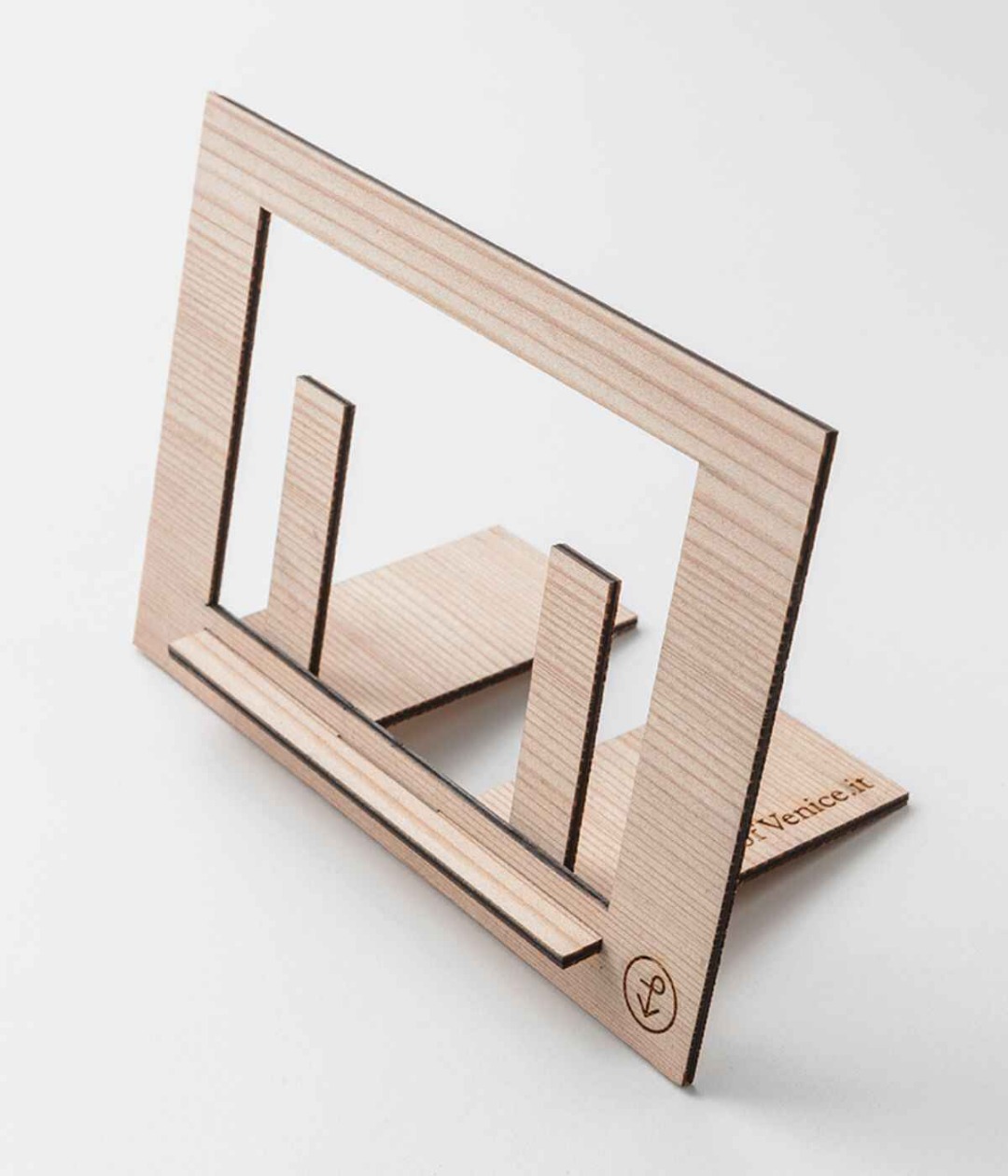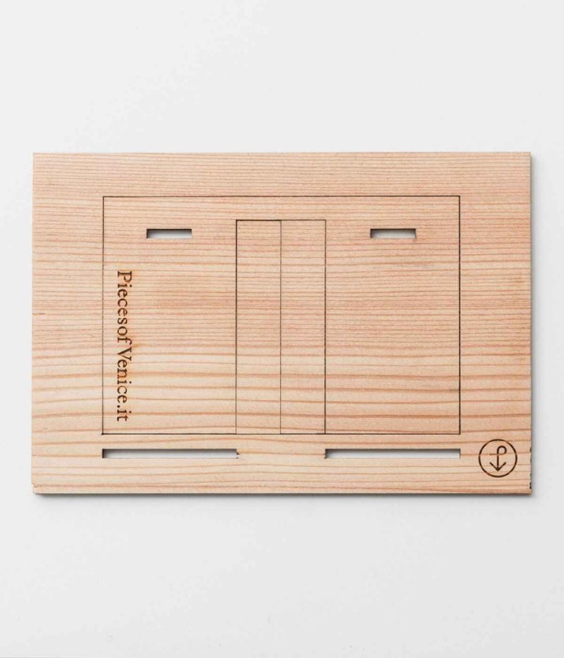 Questo portaritratti sottile, basico, ingegnoso nasce da una tavola di larice di pontile o da un palo di “briccola”. È anche un rompicapo da montare, chiaramente senza istruzioni.§Potrà ospitare lo scatto di uno dei vostri momenti più belli, dalla nascita di un nipote all’anniversario dei nonni, o mostrare una cartolina del fumetto di Corto Maltese ricordando che il suo nome è dedicato al centro culturale intitolato a Hugo Pratt al Lido di Venezia.§This thin, basic, ingenious picture frame is made from a plank of larch from a dock or from the poles of oak wood. It’s also a puzzle to assemble, clearly without instructions.§It can hold a snapshot of one of your most beautiful moments, from the birth of a grandchild to a wedding anniversary, or display a postcard from the Corto Maltese comic, remembering that its name is dedicated to the cultural center named after Hugo Pratt at the Lido of Venice.§§§16,8cm x 11,4cm §§§§§