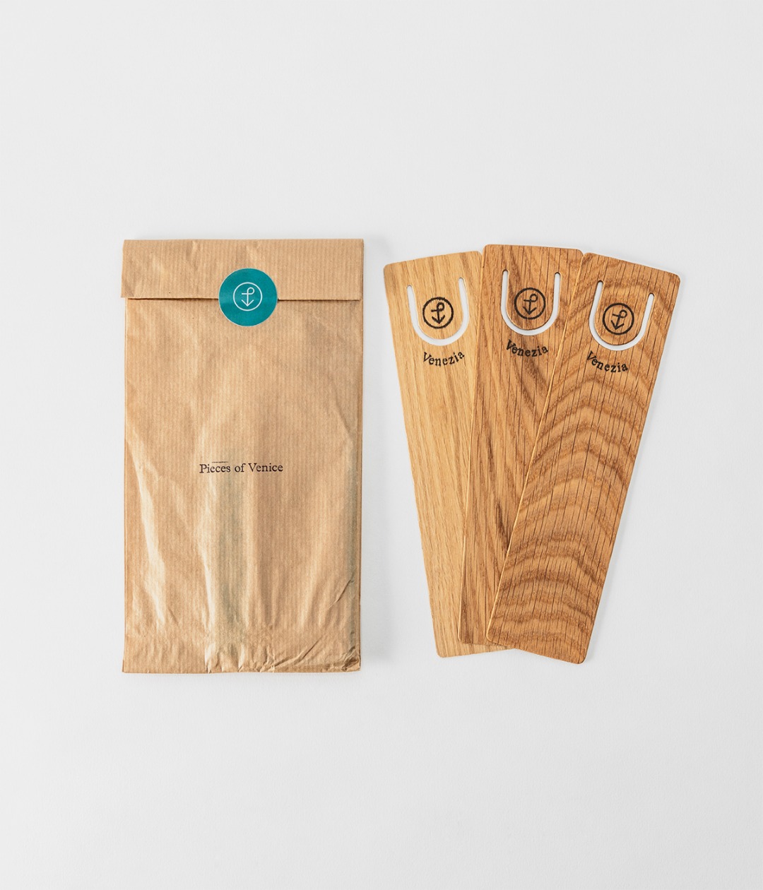 Un Pezzo di Venezia tra le pagine del tuo libro preferito…Un segnalibro realizzato con il legno recuperato delle briccole, i pali che vedi nelle acque di Venezia che segnalano i canali navigabili, che per primi abbiamo usato per le numerose guide della città acquistate nella libreria più bella e curiosa di Venezia : la libreria Acqua Alta!§§§§A Piece of Venice among the pages of your favorite book…§§A bookmark made from reclaimed Briccola wood, the poles you see in the waters of Venice marking navigable channels, first used by us for the numerous city guides purchased from Venice’s most beautiful and curious bookstore: the Acqua Alta bookstore!§§5cm x 20cm§§