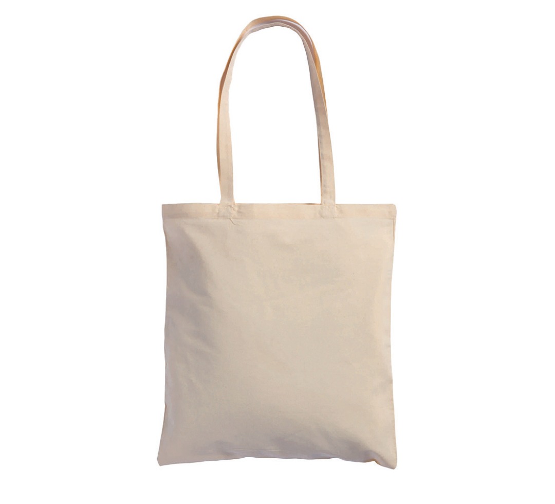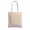 Borsa Shopper con manici lunghi. In cotone biologico certificato, non trattato chimicamente. Logo grande con scritta sulla parte anteriore. Beige, stampa pantone 207 e nero. 38cm x 42cm.
